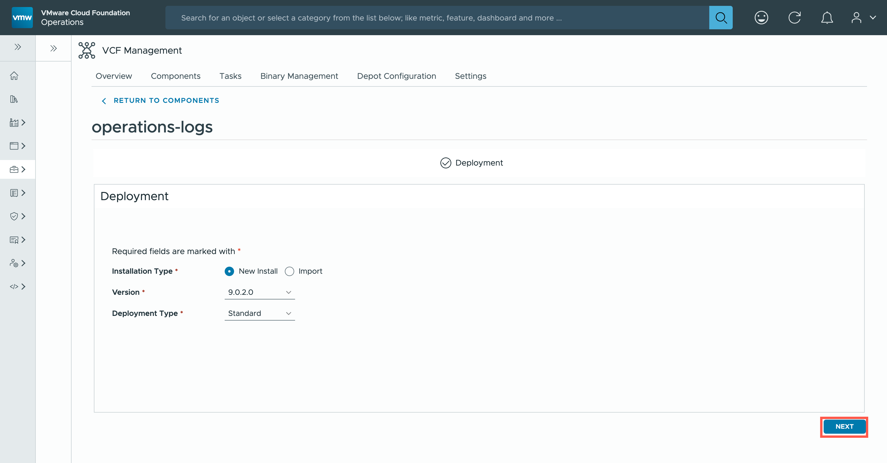 2. Configured either an online or offline depot and downloaded the VCF Operations for logs install binaries.